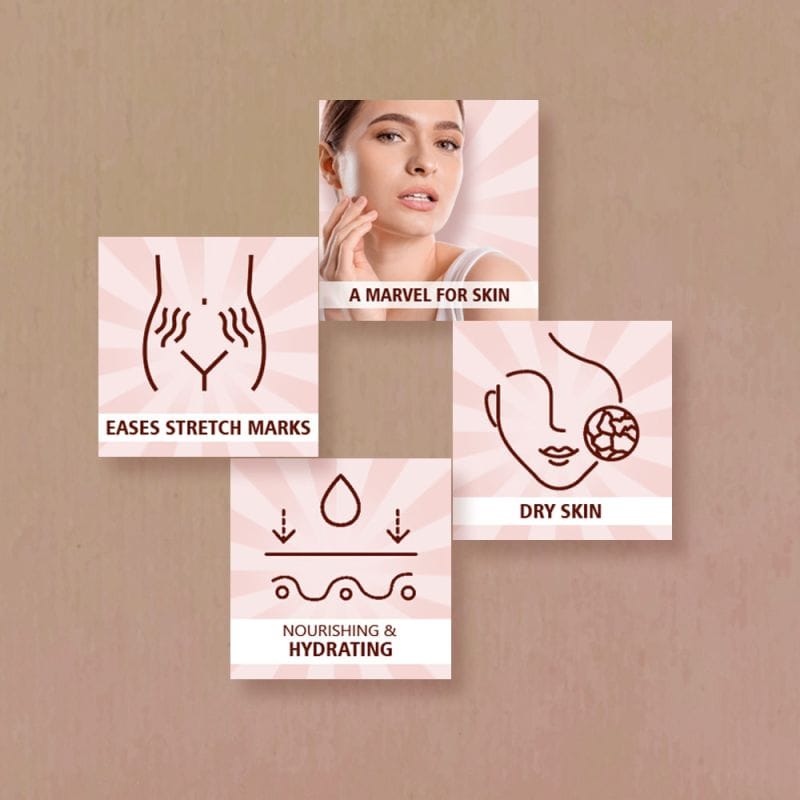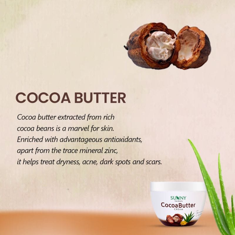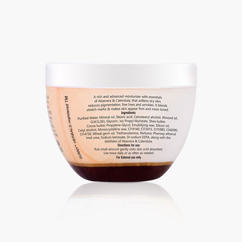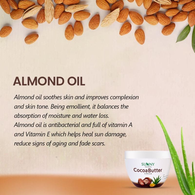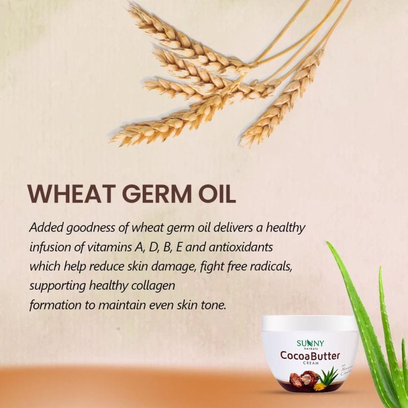 | Cocoa butter extracted from rich cocoa beans is a marvel for skin. Enriched with advantageous antioxidants, apart from the trace mineral zinc, it helps treat dryness, acne, dark spots and scars. Almond oil soothes skin and improves complexion and skin tone. Being emollient, it balances the absorption of moisture and water loss. Almond oil is antibacterial and full of vitamin A and Vitamin E which helps heal sun damage, reduce signs of aging and fade scars. Added goodness of wheat germ oil delivers a healthy infusion of vitamins A, D, B, E and antioxidants which help reduce skin damage, fight free radicals, supporting healthy collagen formation to maintain even skin tone. Ingredients:Purified Water, Mineral oil, Stearic acid, Cetostearyl alcohol, Almond oil, G.M.S.(SE), Glycerin, Iso Propyl Myristate, Shea butter, Cocoa butter, Propylene Glycol, Emulsifying wax, Silicon oil, Cetyl alcohol, Microcrystalline wax, Cl19140, Cl73015, Cl15985, Cl42090, Cl14720, Wheat germ oil, Triethanolamine, Perfume, Phenoxy ethanol, Imid urea, Sodium benzoate, Di-sodium EDTA, along with the distillates of Aloevera & Calendula. |