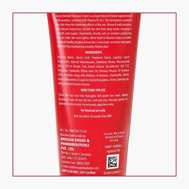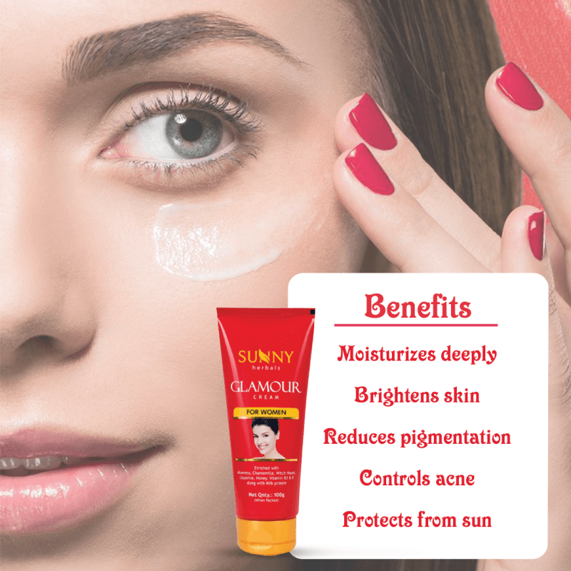 Sunny Herbals Glamour Cream (For Women) enriched with Aloe Vera, Honey and Milk Protein nourishes your skin deeply for glowing skin.