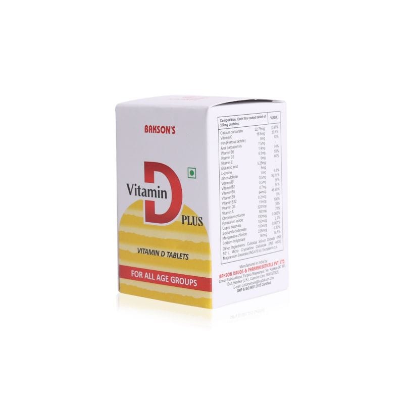 Bakson’s Vitamin D Plus Tablet is a health supplement for strong bones that boosts immunity and aids in recovery. Vitamin D plus capsules improve vital levels of Vitamin D in the body and other essential vitamins. These are extremely helpful during the period of convalescence.