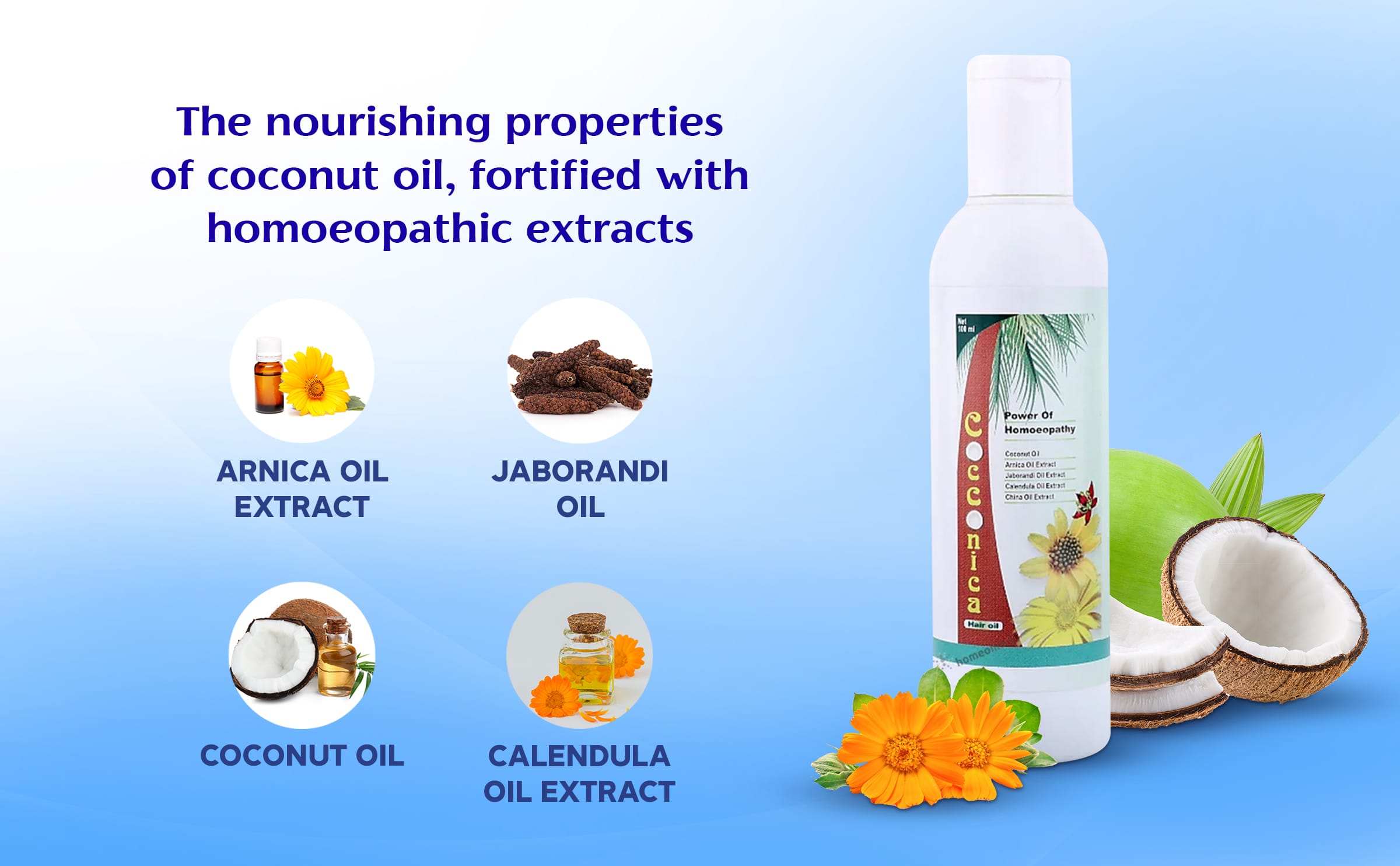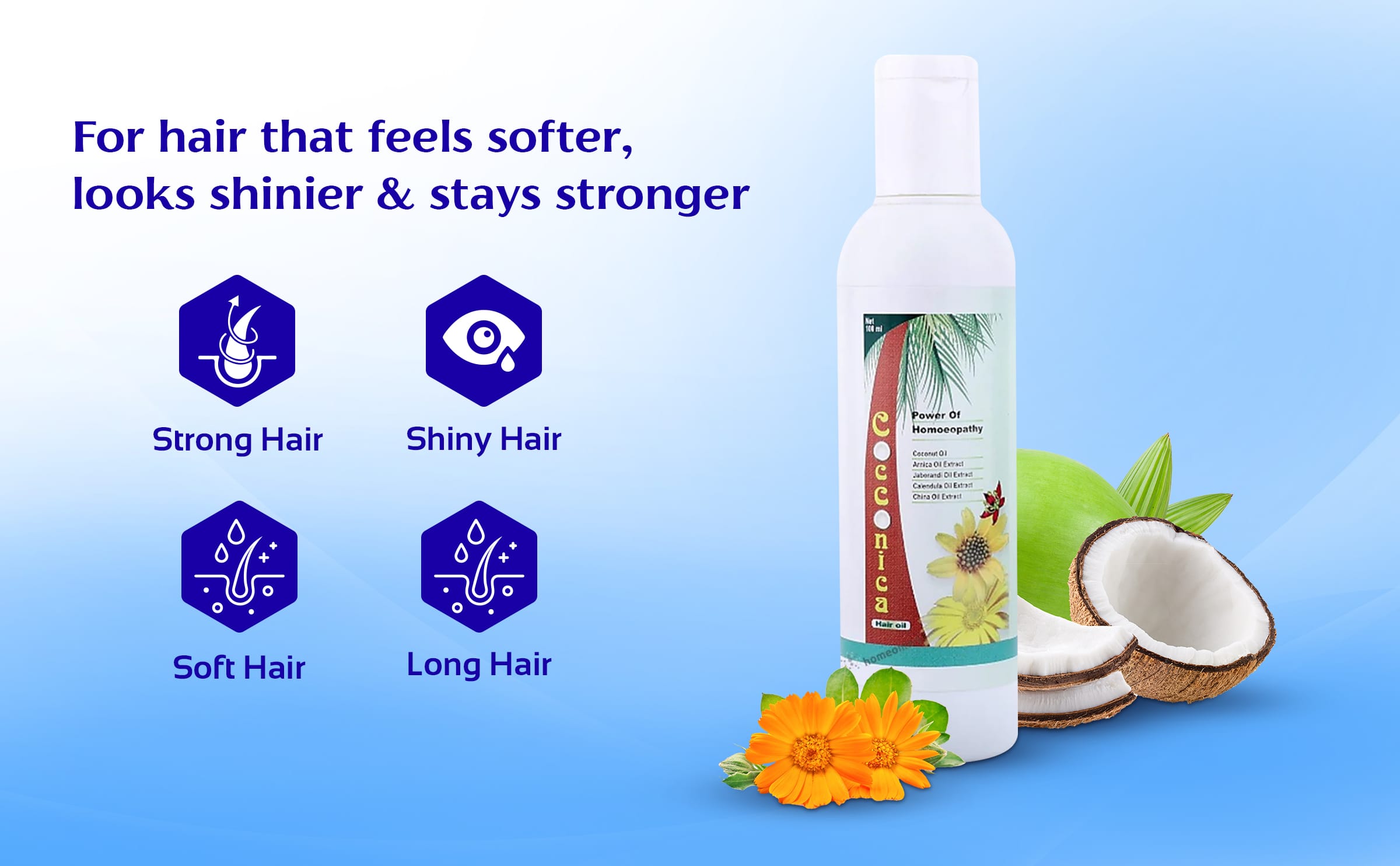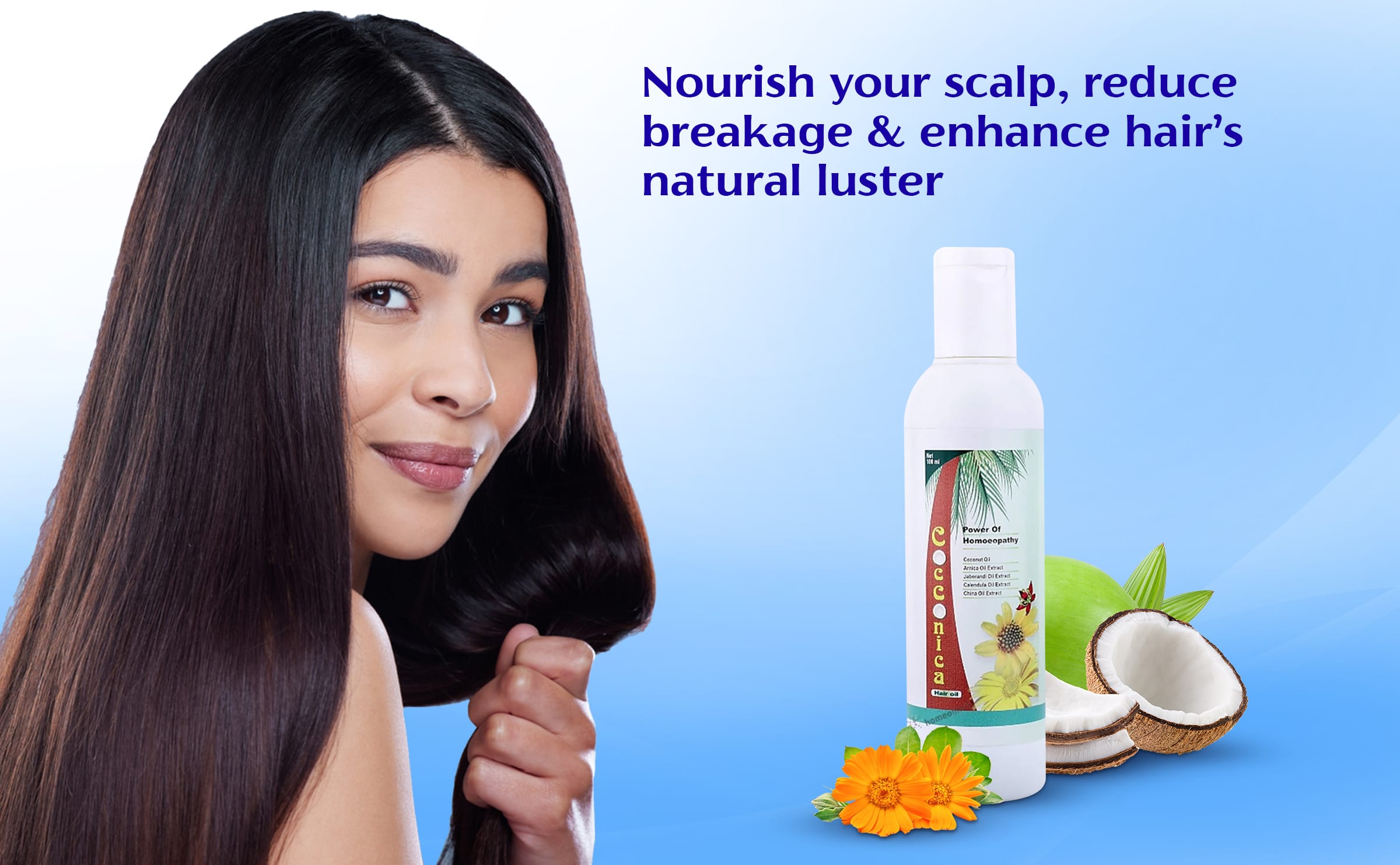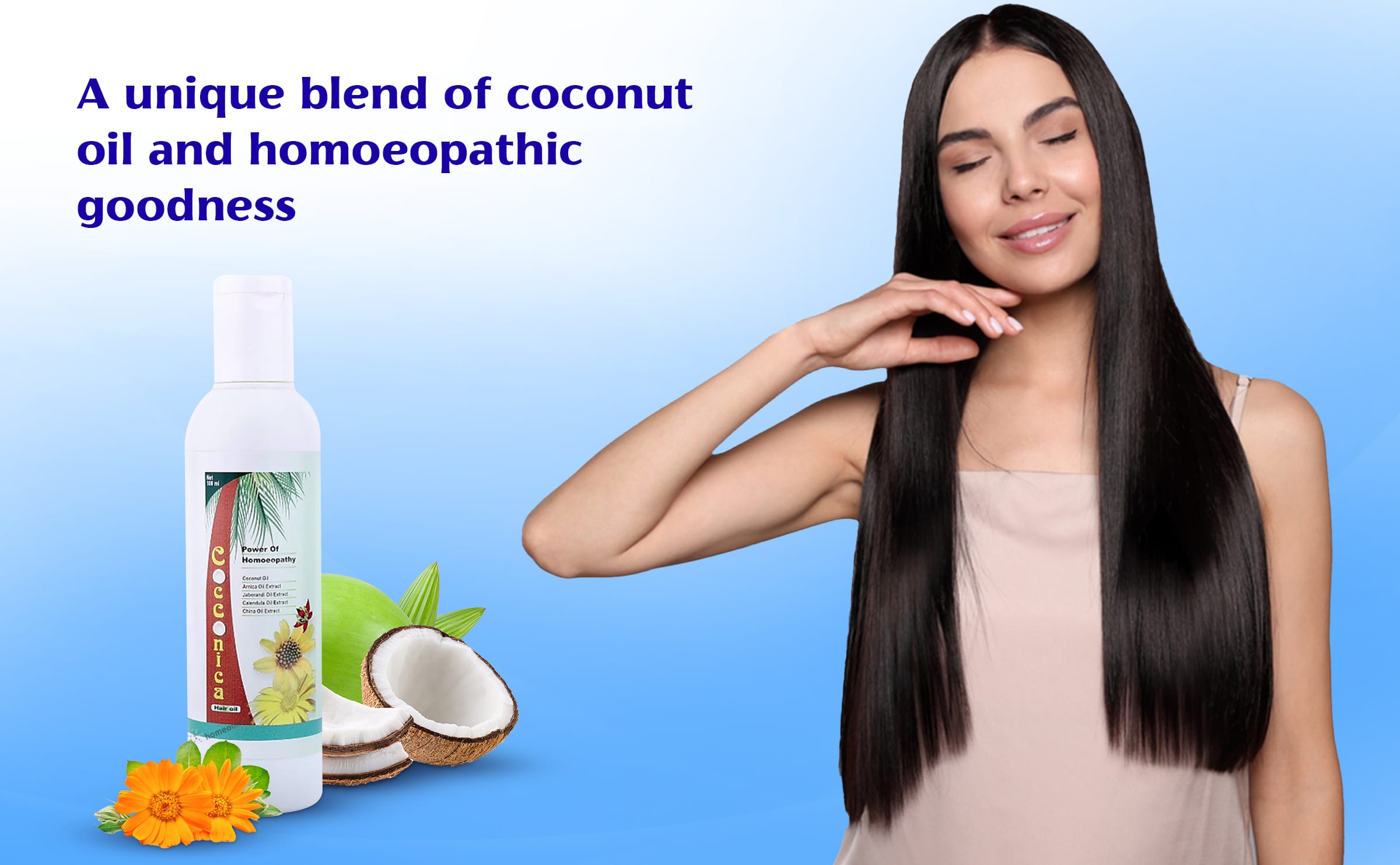 Cocconica Hair Oil is a unique natural formulation of coconut oil fortified with the advantages of homoeopathy to provide strength to hair follicles for longer, softer, and lustrous hair.