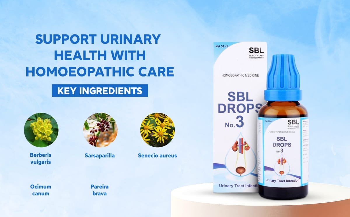 To help manage these symptoms, SBL Drops No. 3 supports a gentle yet comforting homoeopathic medicine for urinary tract infection. This clinically formulated medicine helps relieve irritation and burning during urination, manages inflammation of the urinary passages, and supports the body’s natural healing process. It is considered one of the best homoeopathic medicines for UTI remedy, supporting safe and sustained relief without known side effects.