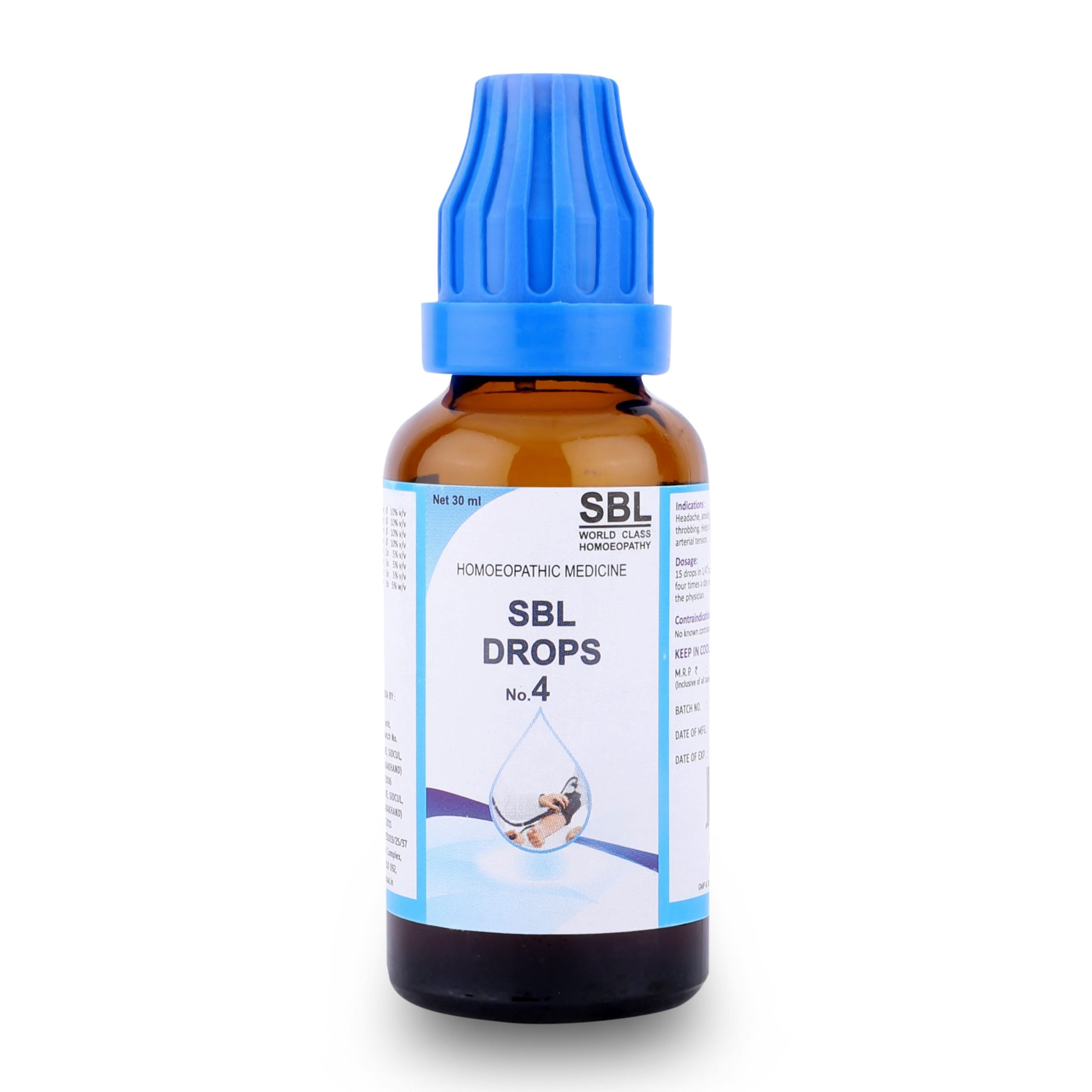SBL Drops No. 4 is a potent homeopathic medicine for hypertension that helps regulate arterial tension and balance blood pressure levels. By addressing underlying causes such as stress and poor circulation, it supports heart health and overall cardiovascular function. It offers a natural solution for maintaining optimal blood pressure without known side effects and can be a helpful part of a holistic approach to manage hypertension alongside lifestyle modifications like a healthy diet, exercise, and stress management. For those looking to buy homoeopathic medicine for blood pressure manage or high BP drops homeopathic medicine, SBL Drops No. 4 is a trusted option.