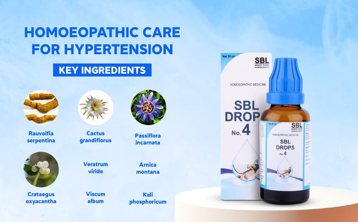 By acting on both the physical and emotional aspects of hypertension, SBL Drops No. 4 offers a comprehensive, natural approach to manage blood pressure and enhance overall well-being, making it a reliable homeopathic medicine for high blood pressure.