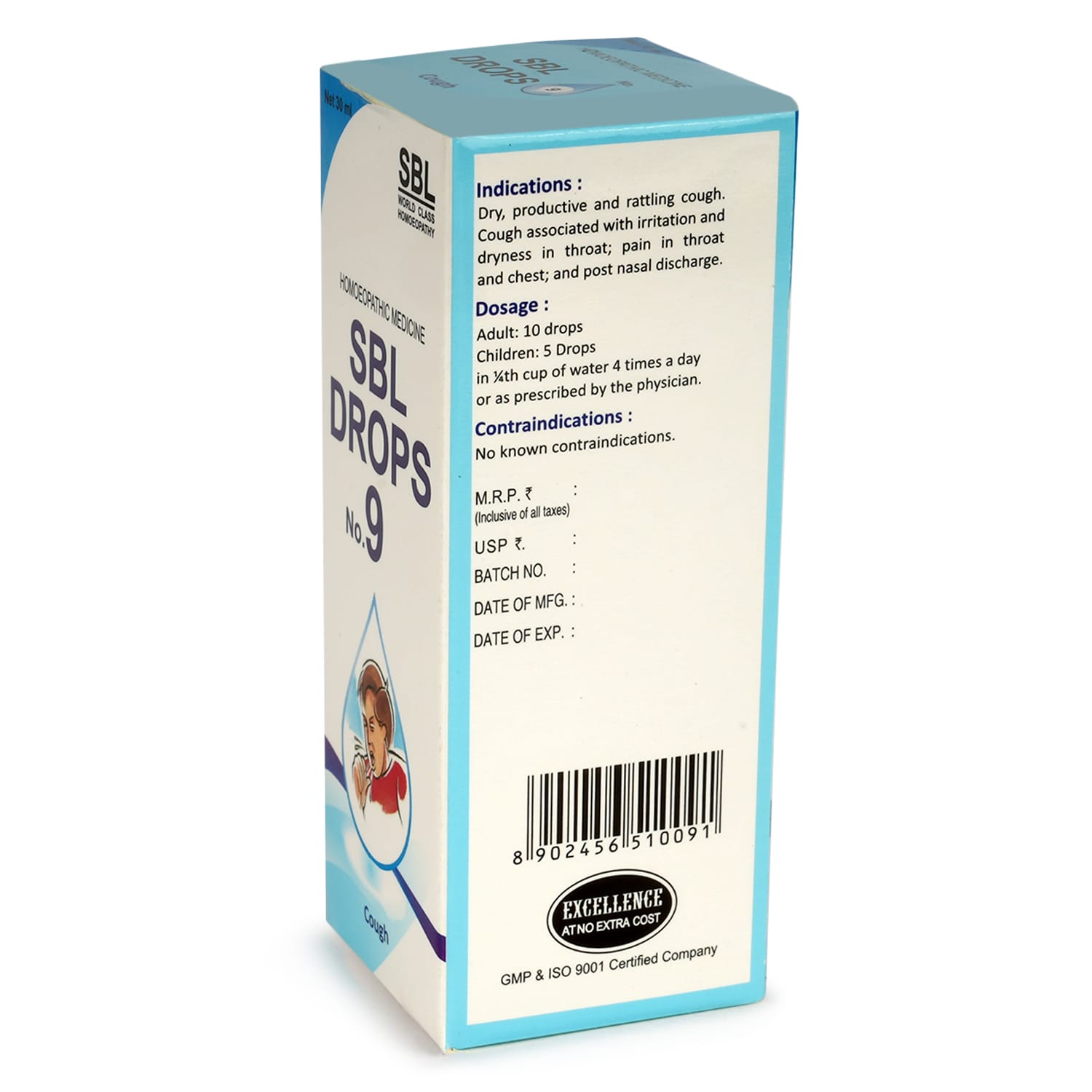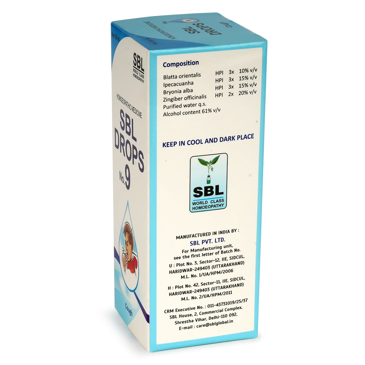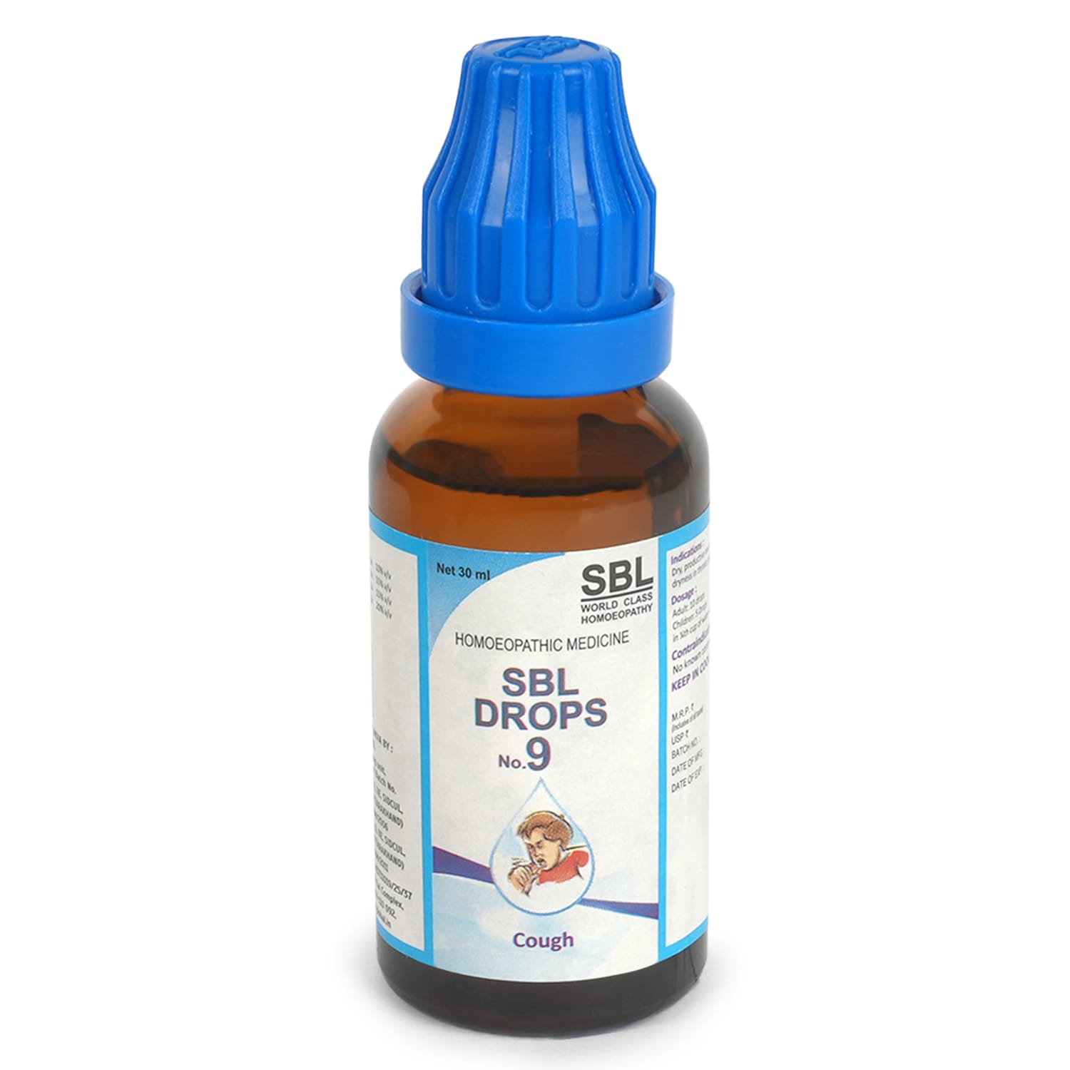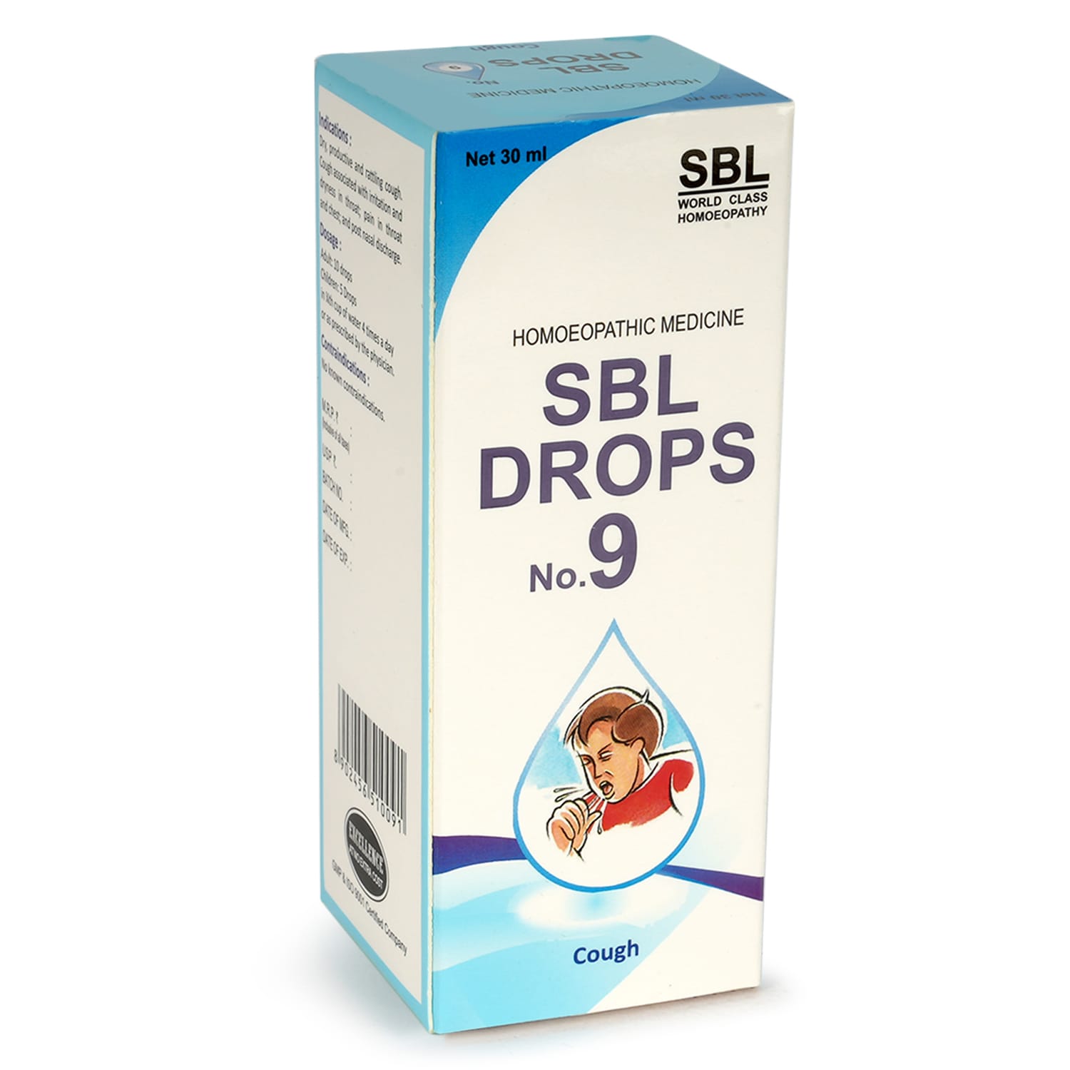 SBL Drops No. 9 is an in-house, clinically proven homeopathic remedy for cough that provides comprehensive relief from various types of cough. It acts gently yet effectively on the respiratory tract, helping to soothe irritation, support expectoration, and ease discomfort — all without any known side effects or habit-forming properties.