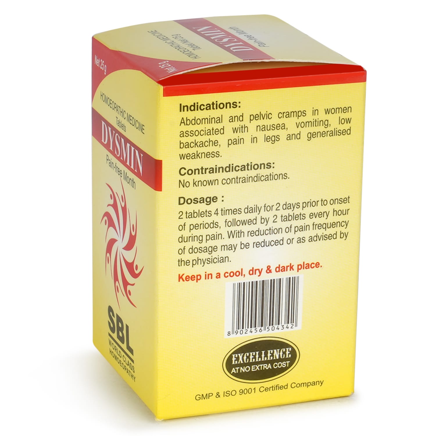 SBL’s Dysmin Tablets is an in-house clinically proven formulation with well-balanced homoeopathic medicines which brings relief from monthly abdominal and pelvic cramps in women associated with nausea, vomiting, low backache, pain in legs, and generalized weakness. It has no known contra-indication.