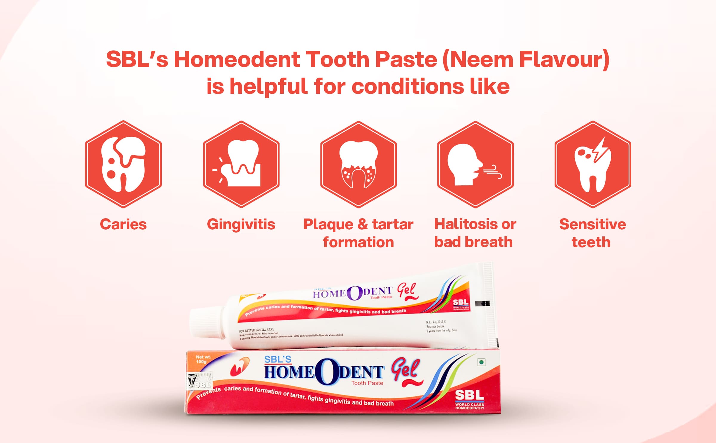 Helps in Gingivitis, Senstivity, Caries, Bad Breath, Plaque, Tartar