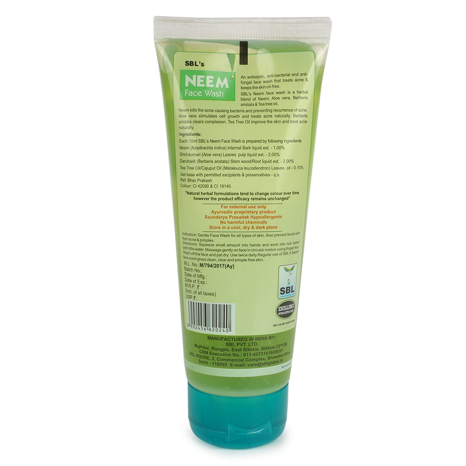 SBL’s Neem Face Wash is an antiseptic, antibacterial, and anti-fungal face wash that addresses acne & keeps the skin oil-free. SBL’s Neem face wash is an herbal blend of Neem, Aloe vera, Berberis aristata, and tea tree oil.