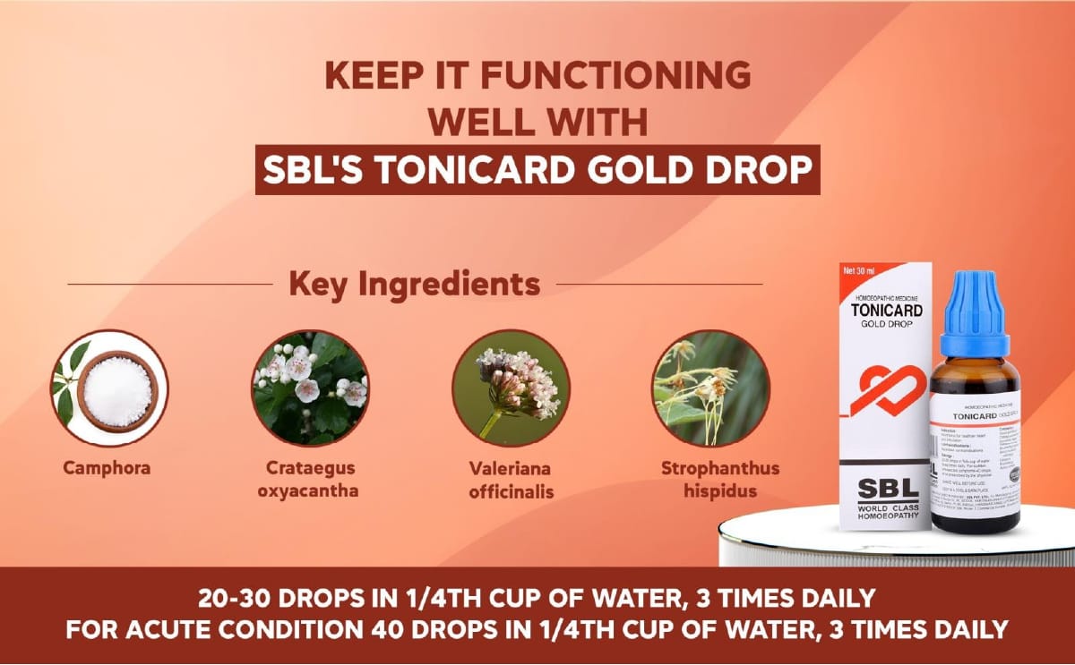 SBL’s Tonicard Gold Drops is a scientifically formulated homoeopathic high blood pressure medicine designed to help maintain cardiovascular health and to support heart function naturally. In today’s fast-paced lifestyle, factors such as stress, poor dietary habits, smoking, sedentary behavior, heredity, and conditions like diabetes can adversely affect heart performance. Keeping your heart healthy and active is essential and SBL’s Tonicard Gold Drops provide the ideal natural medicine for high blood pressure and related cardiac concerns.